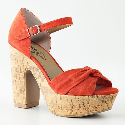Keep it fun and flirty in these Mudd heels. Featuring a knotted toe and chunky platform heel, these juniors' shoes are a lovely choice for any casual outfit.